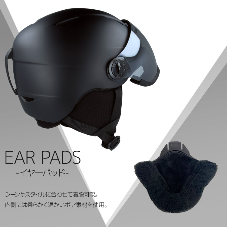 | 仕様・その他 | ・バイザー一体型 ・ダイアルアジャスター ・ベンチレーション ・ゴーグルホルダー ・イヤーパッド |