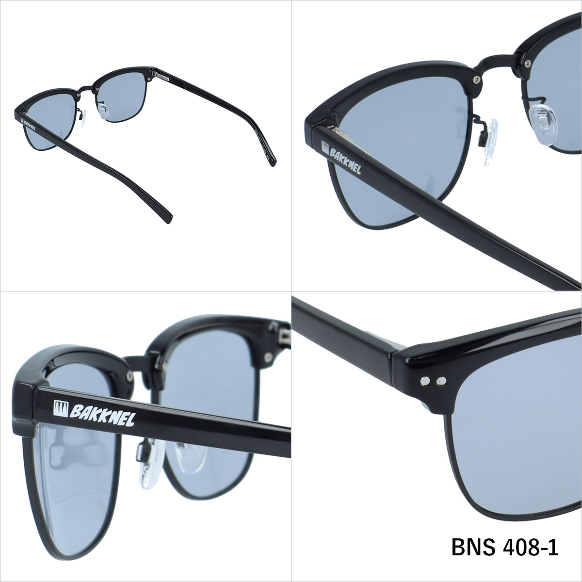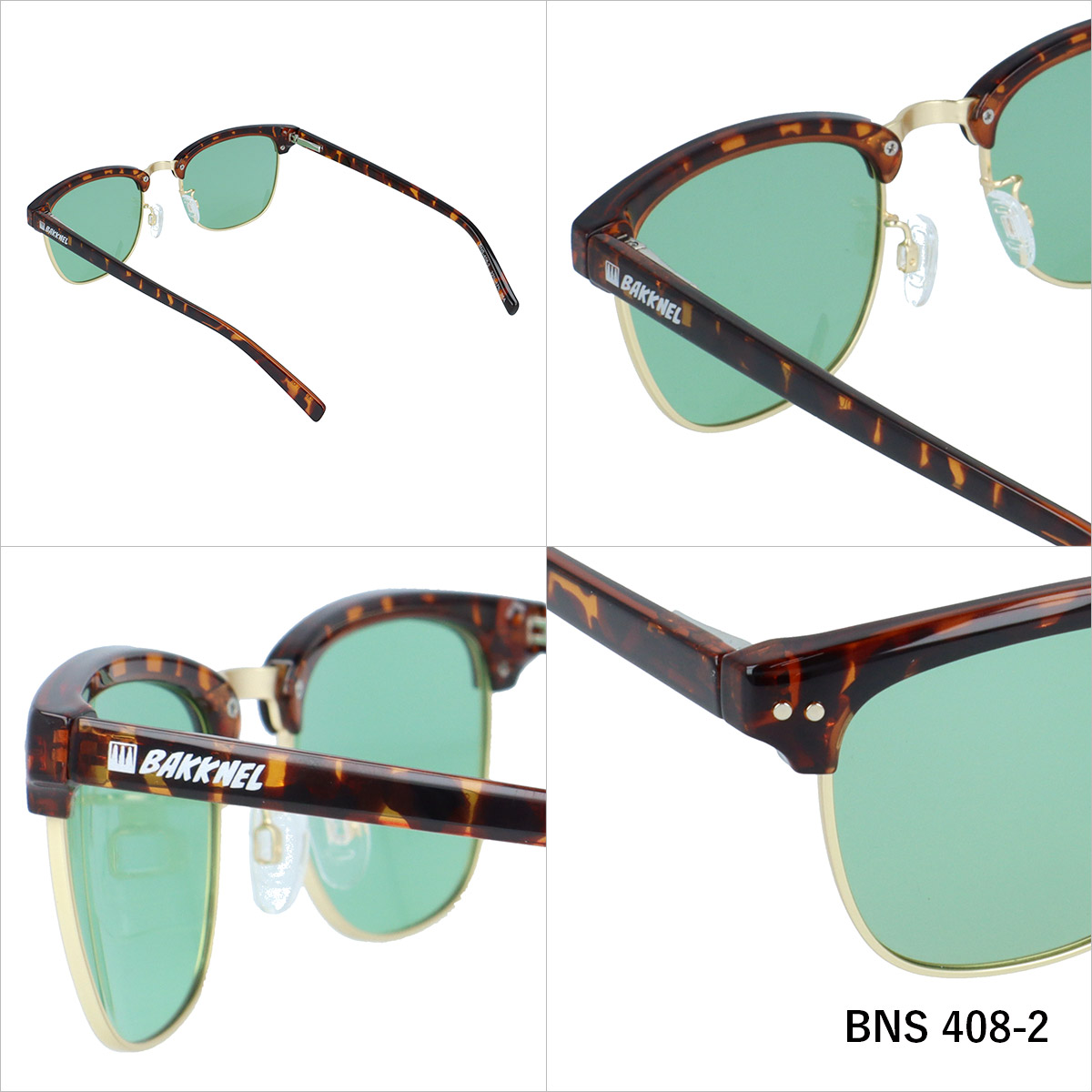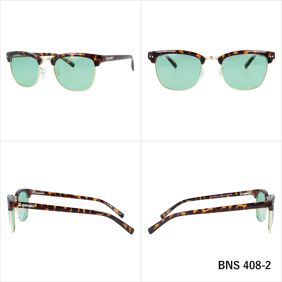| カラー | 《BNS408-1 / 4969701470245》 フレーム:シャイニーブラック/メタリックマットブラック レンズ:ライトスモーク→スモーク 《BNS408-2 / 4969701470252》 フレーム:シャイニーブラウンデミ/マットゴールド レンズ:ライトグリーン→スモーク |